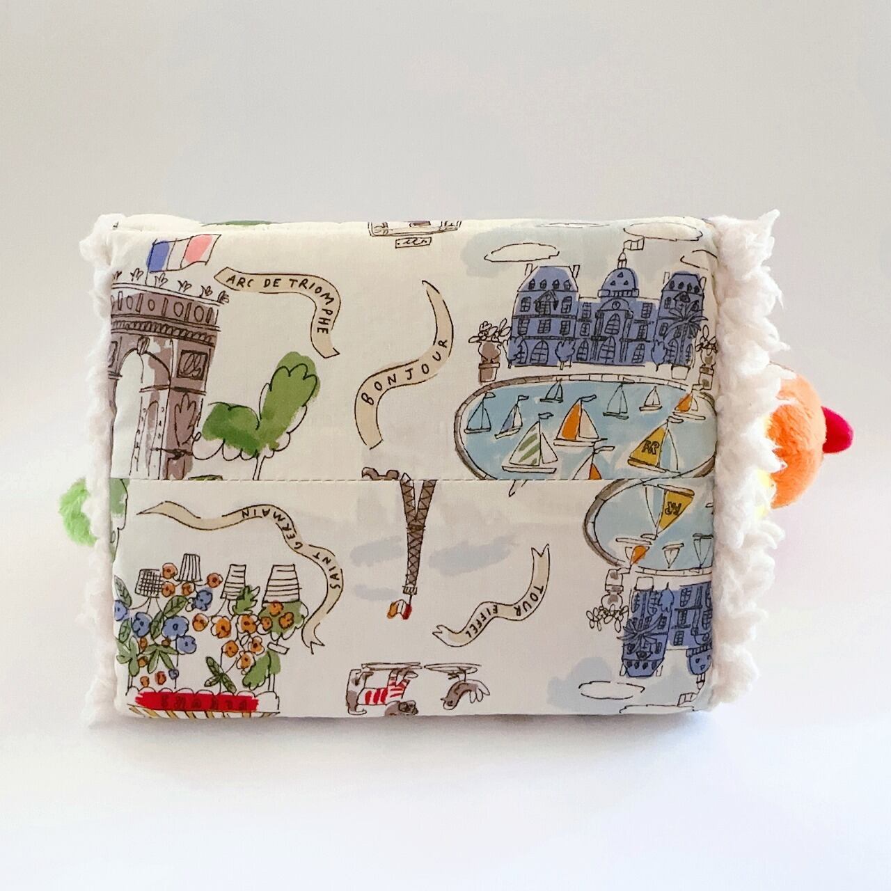 パリの建築物と街の様子をチャーミングにスケッチしたような可愛らしいカンバセーショナルデザインです。インクで描いたラインにルーズに色が載せられた絵葉書のようなデザインの「ボンジュール」は、光の都への軽快な旅を表現しています。
